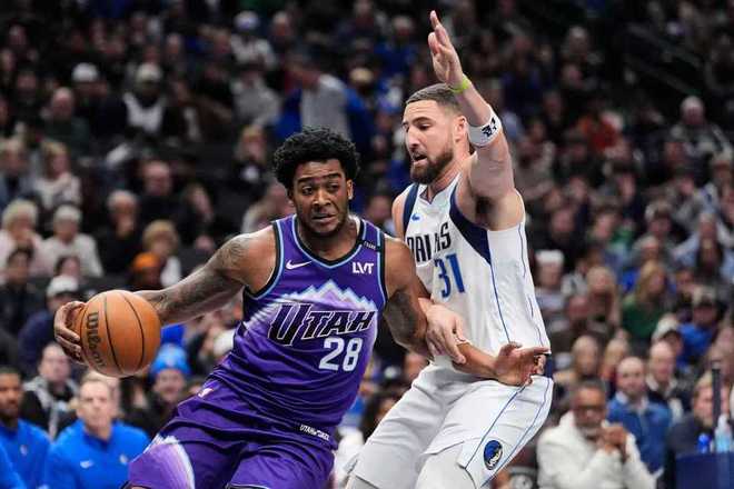 独行侠上一次主场144-122大胜爵士,爵士过去两场连续客场输给公牛与独行侠遭遇2连败,本赛季前三次交锋独行侠1胜2负处于下风。本场独行侠缺少弗拉格、欧文、浓眉哥、加福德、莱夫利,爵士缺少马尔卡宁、尼昂与凯斯勒。首节前4分半钟,独行侠内外开花取得13-4领先优势,克莱持续得分,引领独行侠逐步扩大26-12领先优势。爵士有所反扑追分,但独行侠多点开花得分巩固优势,首节比赛结束独行侠42-29领先爵士13分。