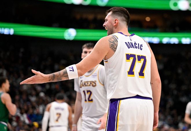 搞笑,湖人队东契奇拒绝球场上与马歇尔换球衣的原因:不想露身材
