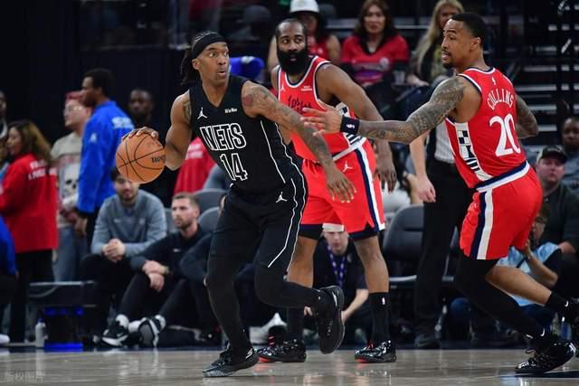 篮网进攻状态低迷,三分23中5,投篮43中12,还出现了9次失误。